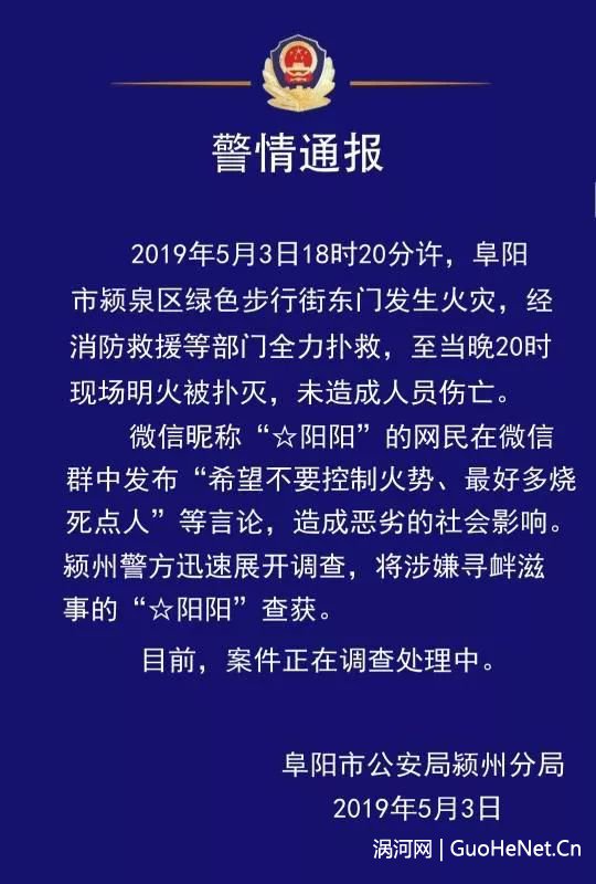 昨晚,阜陽(yáng)市公安局潁州分局發(fā)布了警情通報(bào)