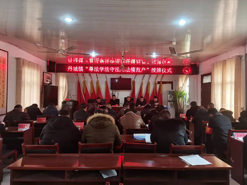 為促進(jìn)“八五”普法開(kāi)好局、起好步,宣傳法治社會(huì)建設(shè)的重大意義,營(yíng)造認(rèn)真學(xué)法、自覺(jué)守法、正確用法的濃郁氛圍,1月7日上午,丹城鎮(zhèn)在鎮(zhèn)會(huì)議室舉行“尊法學(xué)法守法用法模范戶”授牌儀式。