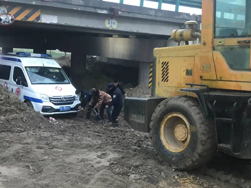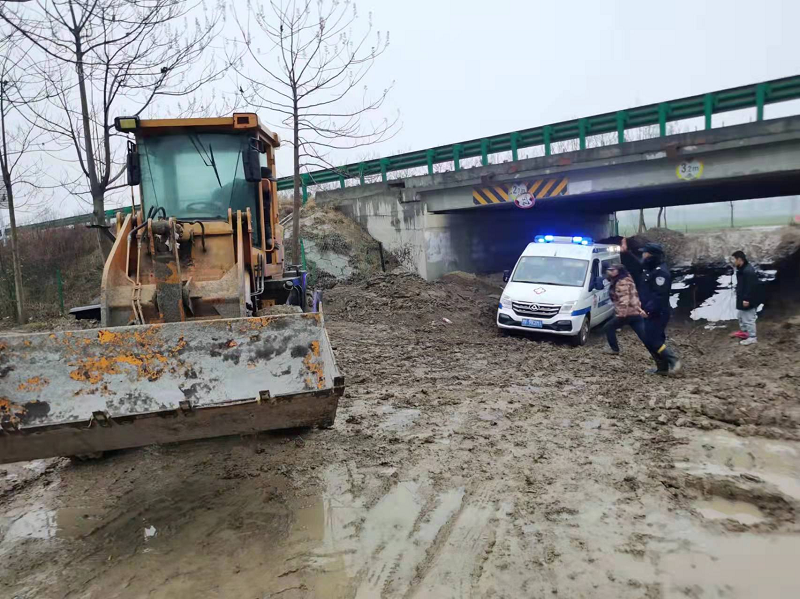 2022年1月5日5時(shí)許,渦陽(yáng)縣丹城派出所接到報(bào)警稱,在丹城鎮(zhèn)齊東村高速路橋下,一輛蘇州牌照的救護(hù)車陷在路上,請(qǐng)求救援。