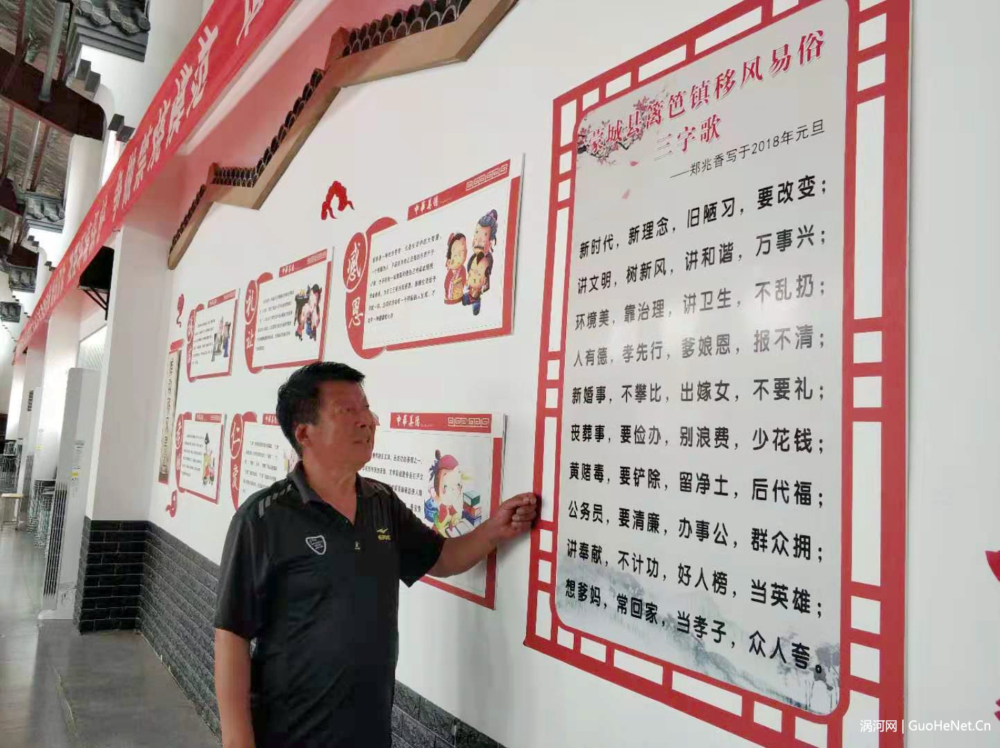 在籬笆鎮(zhèn)的籬笆社區(qū)禮堂,鄭兆香的《移風(fēng)易俗三字歌》被布置在禮堂靠近主席臺(tái)的文化墻上,每次禮堂舉行活動(dòng),“三字歌”都成為關(guān)注的焦點(diǎn)。鄭兆香說“三字歌”進(jìn)禮堂,體現(xiàn)了籬笆鎮(zhèn)對(duì)移風(fēng)易俗的重視。